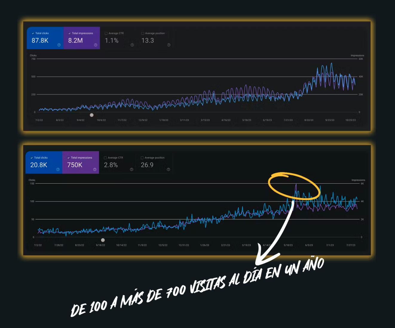 Impacto en el retorno de inversión (ROI): Dado que el tráfico orgánico no requiere un gasto continuo en publicidad, puede tener un ROI más alto en comparación con las estrategias de pago. Invertir en SEO puede rendir frutos consistentemente a medida que el sitio atrae tráfico continuamente sin costos adicionales.