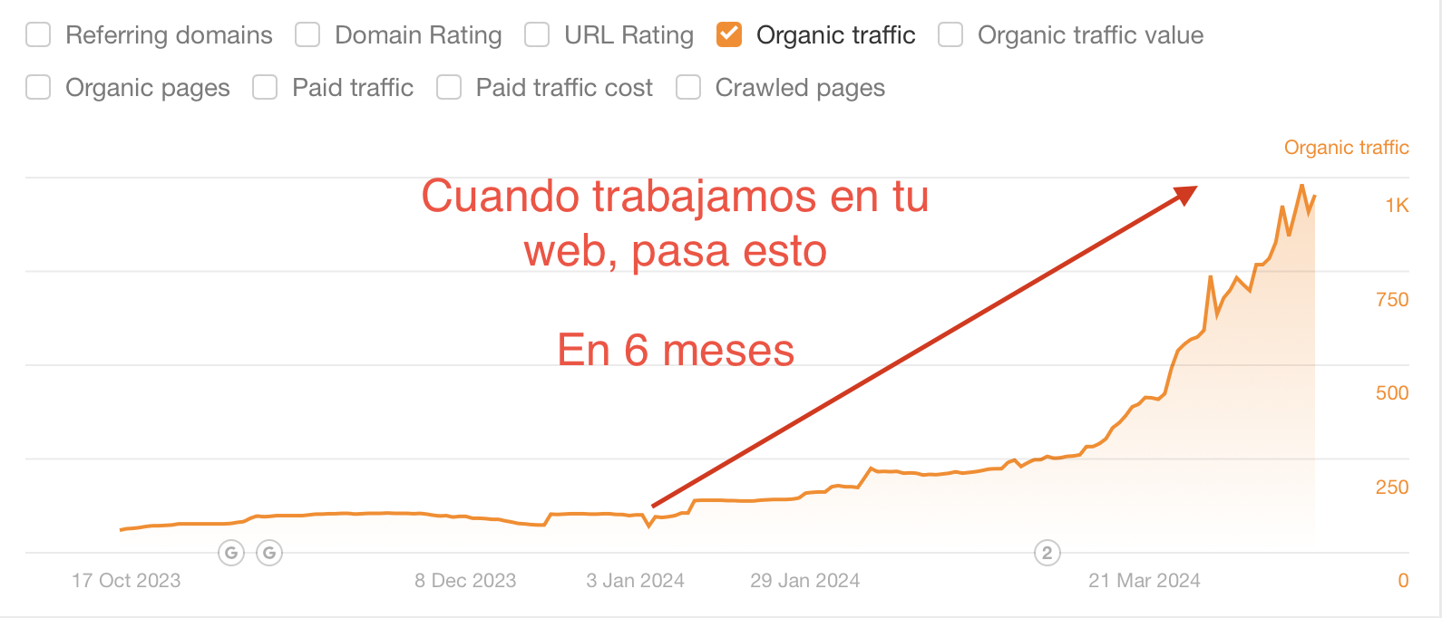 Tráfico orgánico: La cantidad de visitantes que llegan al sitio a través de búsquedas no pagadas.